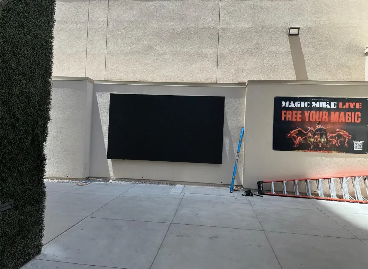 LED panels will be installed in these wall sections using a leveled steel mounting frame, securely anchored to the surface and aligned to the exact screen size.